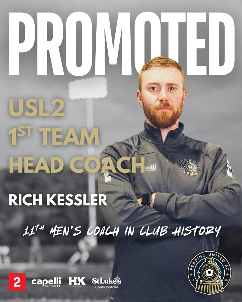 Reading United AC is proud to announce the promotion of Rich Kessler to Head Coach of the club’s USL2 men’s team after previously serving as an assistant coach and goalkeeper coach since 2021. He succeeds Casey Moore, who recently transitioned to the newly established position of Sporting Director following five seasons at the helm.